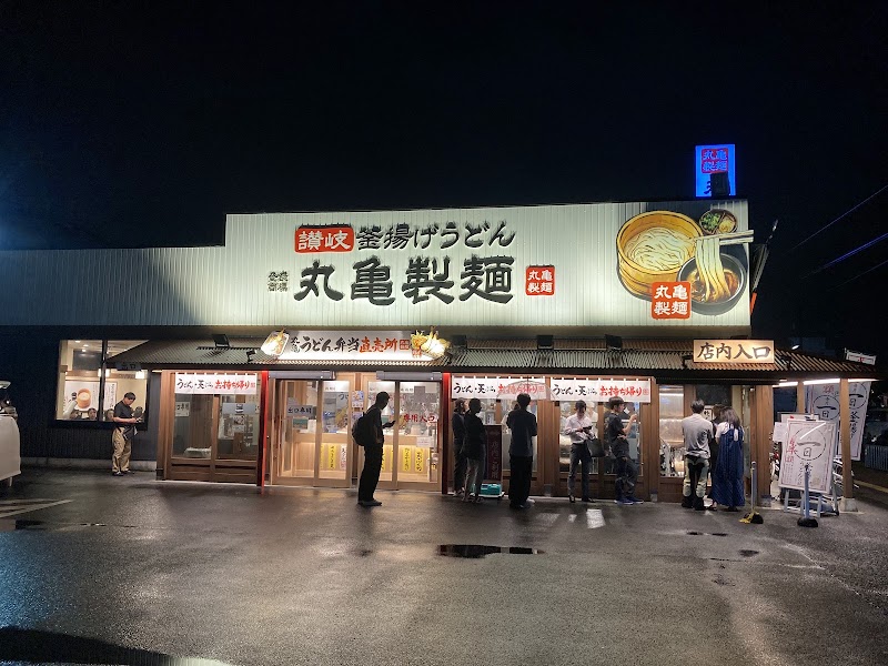 国道1号線の東側にある讃岐うどんチェーン店の丸亀製麺のお店です。毎月1日に釜揚げうどん半額セールをやっています。お値段安めなのですが、天ぷらを追加すると結構良いお値段になります。