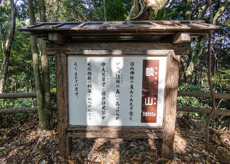 かたらいやま。中大兄皇子と中臣鎌足が謀議を行った山。展望台がある。木々で遮られ見通しは良くないが大和三山が見える。