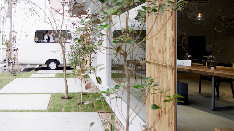 おしゃれな美容院の一角にあるキッキンカーのカフェ。